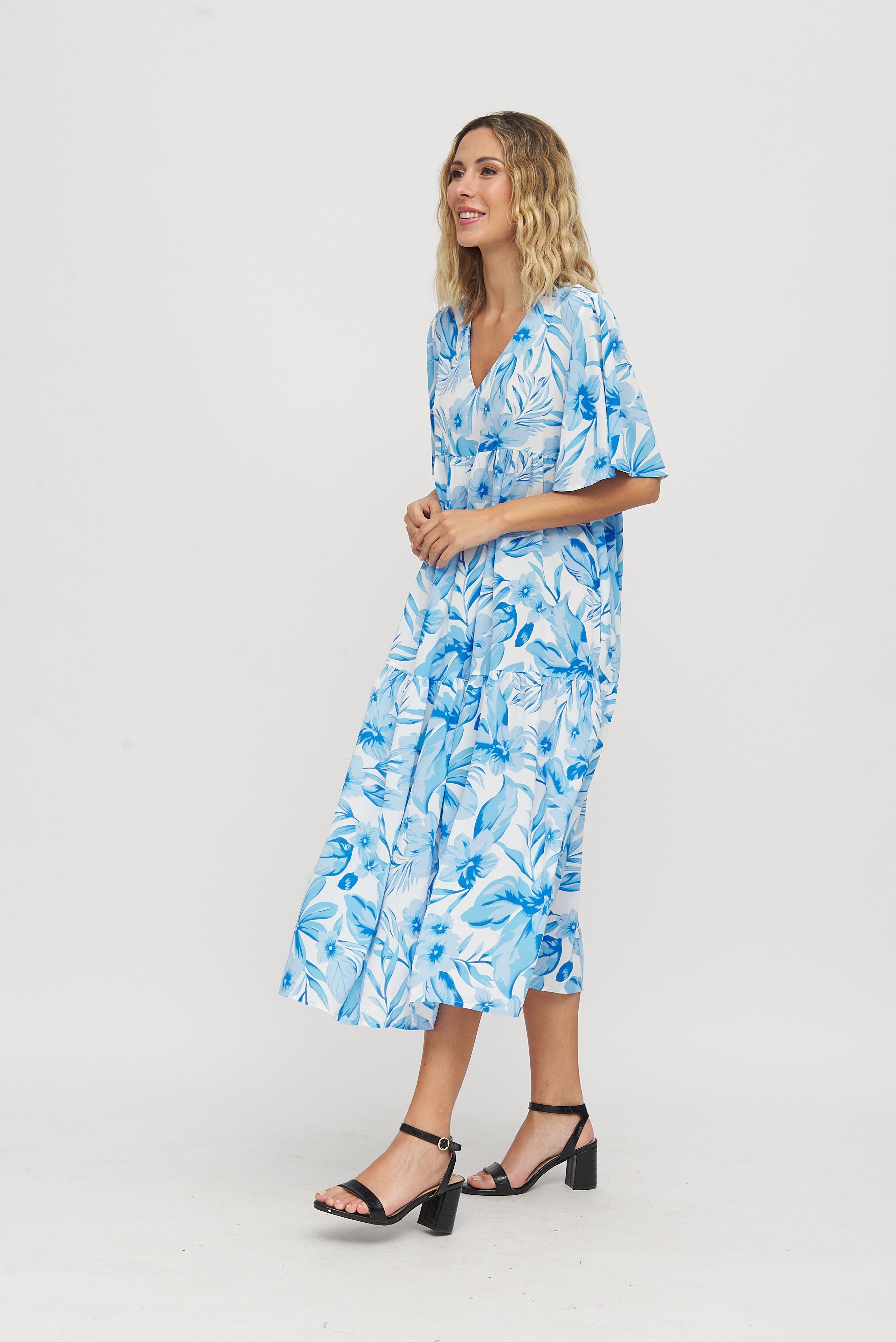 Vestido largo azul pastel