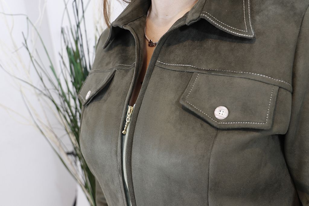 CHAQUETA DE ANTELINA de gran confeccion y de imnumerables detalles de su trabajo. De artesania y con una modernidad adecuada a sus tiempos dandole esa calidez de prenda bien hecha.